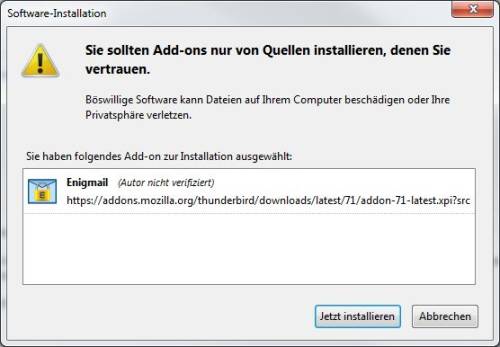 - Wir suchen Enigmail und installieren es.
