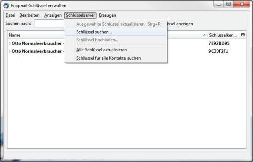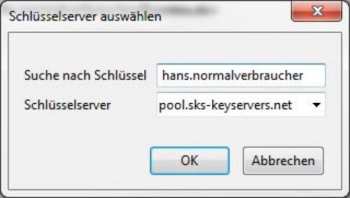 - Wenn dieser den Schlüssel auf einen Schlüsselserver hochgeladen hat, dann können wir ihn ganz bequem suchen.