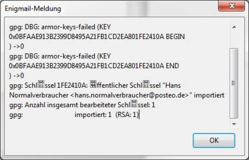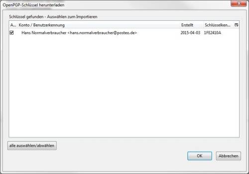 - Wurde ein Schlüssel gefunden, können wir ihn auswählen und importieren.